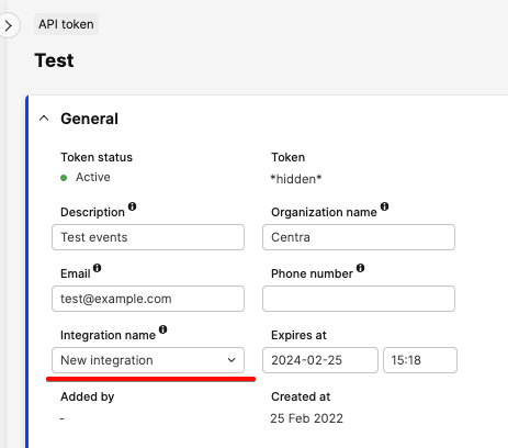 Please note, you can have multiple tokens with the same integration name. In this case, these tokens will share the same event queue.