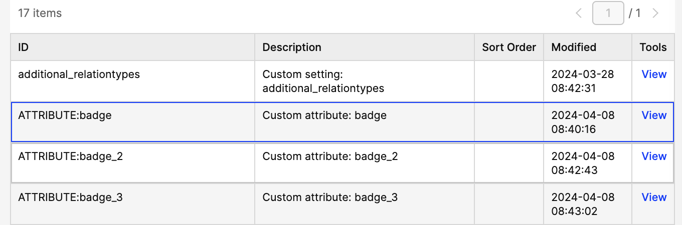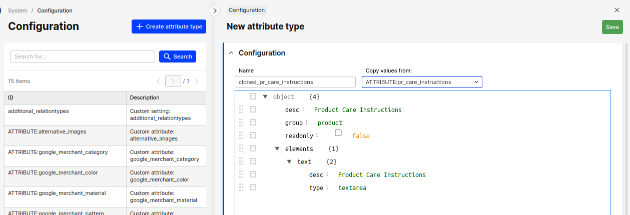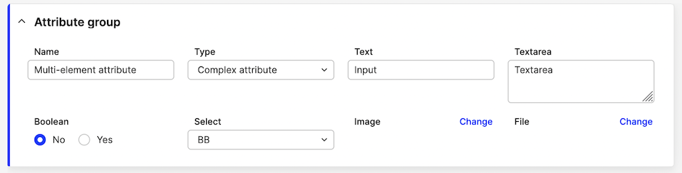 Every attribute type definition is editable separately. The configuration structure remains the same.