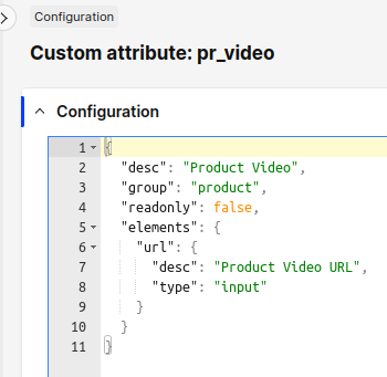 "elements": { "url": { "desc": "Product Video URL", "type": "input" } }