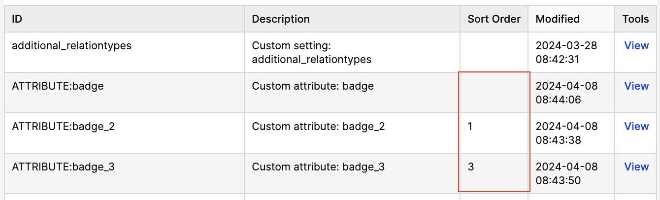 By default, we sort custom attributes alphabetically. If you want to change the order, you can use a Sort order field to the attribute definition. Please note that you can change it only on editable attributes. The lower the number, the higher the attribute will be in the list. Predefined attributes are always sorted last.