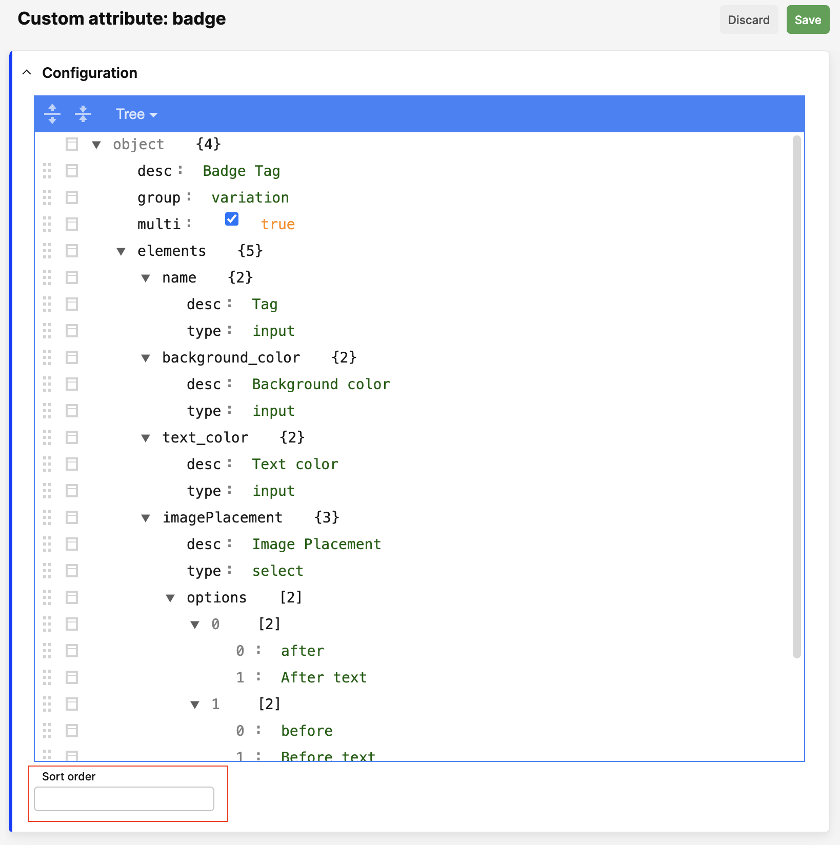 The attribute configuration looks like this: